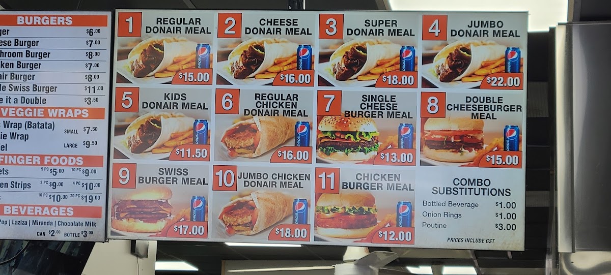 Welcome to Swiss Donair, located in Edmonton, Alberta, where we celebrate the art of flavorful dining! Our menu showcases a delightful range of options that cater to every palate. At the heart of our offerings are our expertly crafted burgers, including the classic Swiss Burger and the savory Mushroom Burger, all grilled to perfection.